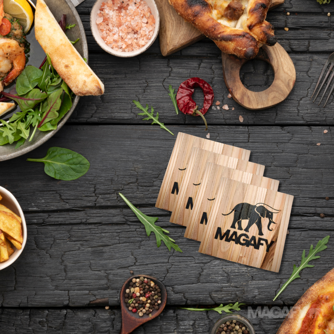 Set down your hot or cold drinks on a MAGAFY coaster. This 4-pack of cedar coasters uses a heat branding process that alters the structure of the wood fibers but does not remove any material, resulting in a more permanent mark that is less susceptible to fading or wearing over time.